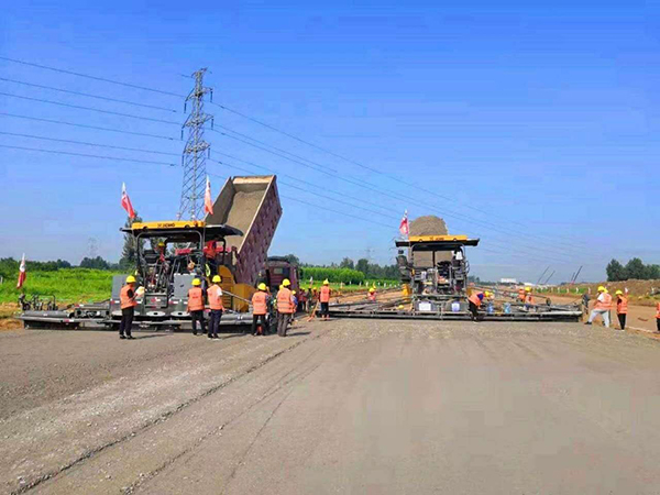水穩(wěn)攤鋪施工現(xiàn)場(chǎng)