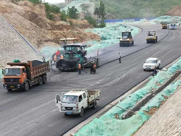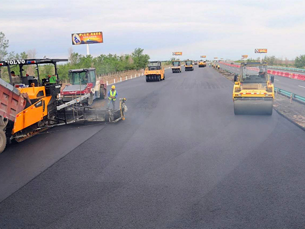 瀝青攤鋪施工現(xiàn)場(chǎng)
