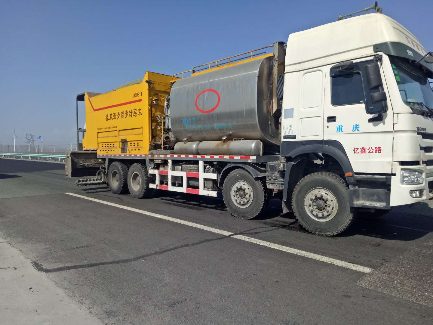 碎石封層施工現(xiàn)場(chǎng)